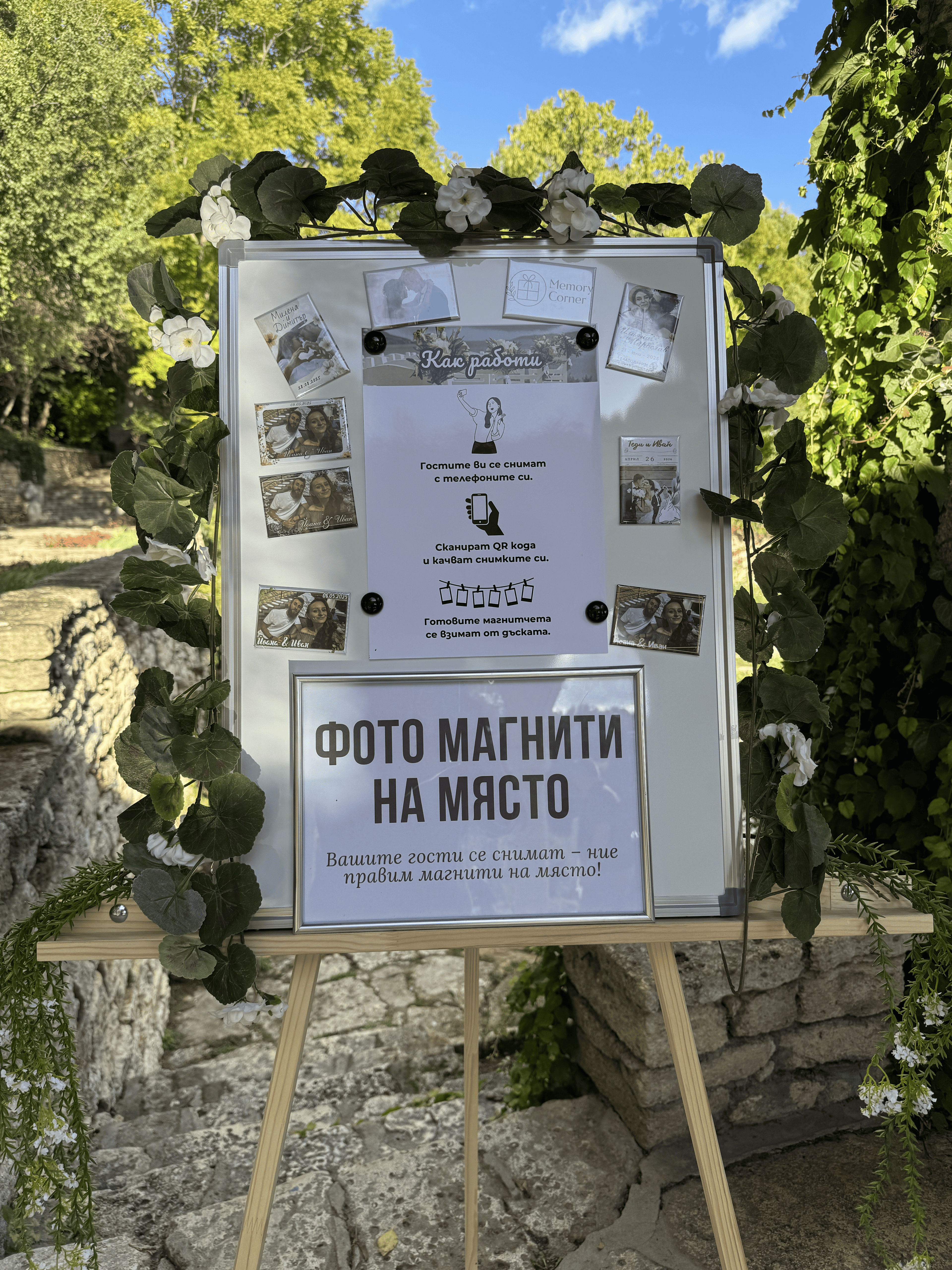 Искате ли вашите гости да отнесат частица от емоцията вкъщи? Нашата услуга за персонализирани магнити на място превръща всеки миг в незабравим спомен! Това е нова услуга, която можем да обясним най-лесно така – като фото будка, но с магнити. :)